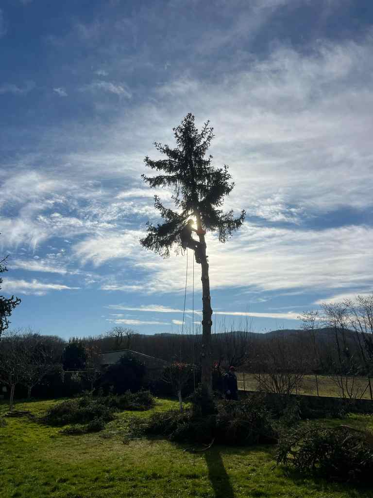 Lorsqu’un arbre ne peut être abattu directement (à cause de la proximité d’une maison, piscine, véranda, etc…), on procède à un démontage : l’arbre est retiré petit à petit, du haut vers le bas. Cela peut concerner des arbres sains ou morts, avec des techniques adaptées pour protéger ce qui se trouve autour.